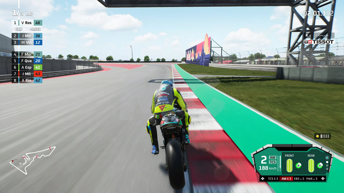 Con todo, tenemos aun más opciones y detalles tanto en la configuración como durante el pilotaje que en anteriores entregas. Un ejemplo de ello es el control de mapa de motor y de consumo de gasolina durante los momentos en pista, y es que te aseguramos que verte de pronto con la moto sin carburante no es para nada descabellado.