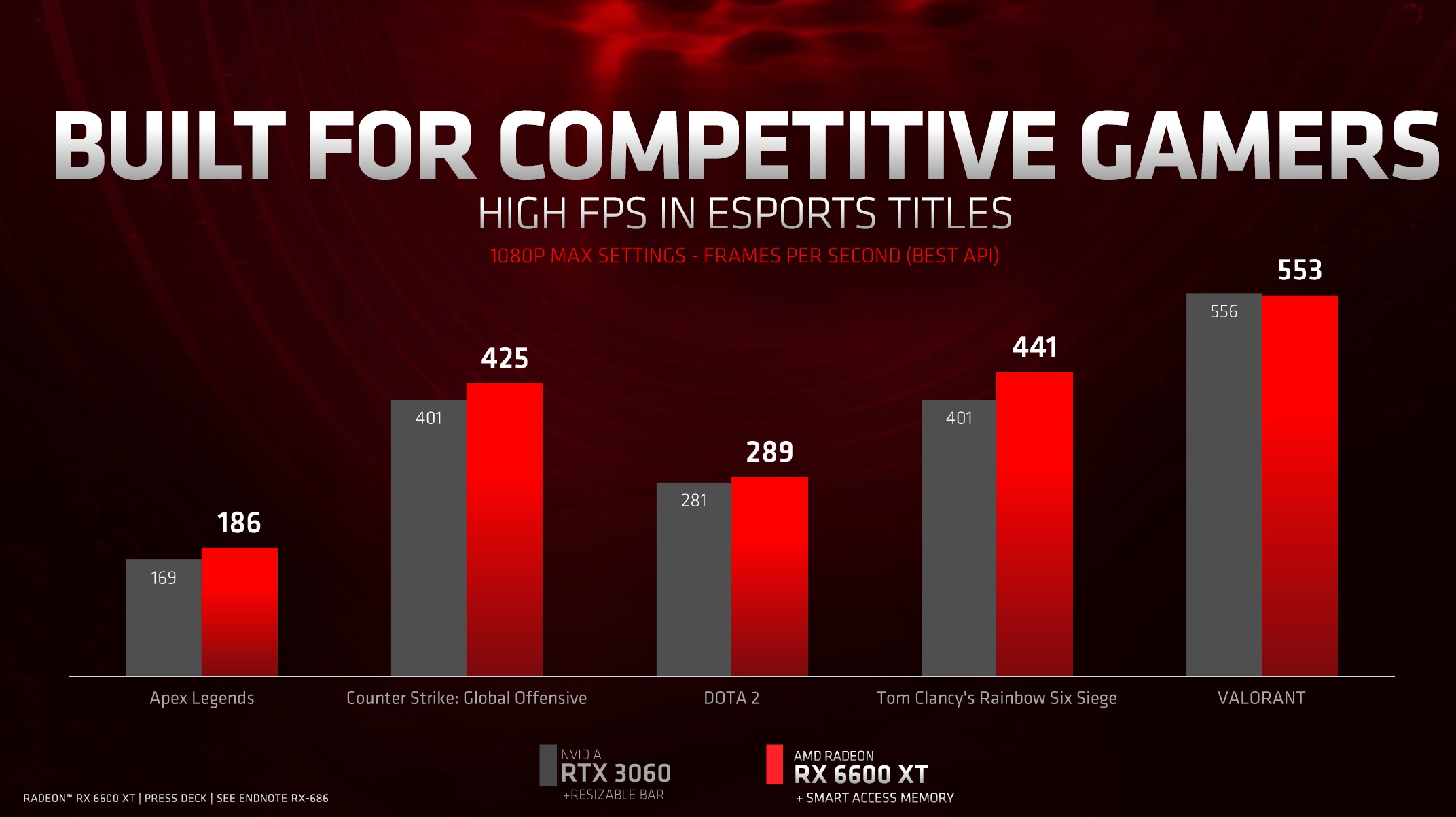 Los que nos leéis a diario recordaréis que, en su momento, dije que la Radeon RX 6600 XT iba a ser más potente que la RTX 3060, pero también un poco más cara, y que rondaría entre los 350 y los 399 dólares. Pues no iba desencaminado, según AMD la Radeon RX 6600 XT es hasta un 15% más potente que la solución gráfica de NVIDIA, y tendrá un precio de venta recomendado de 379 dólares. A efectos comparativos, os recuerdo que la RTX 3060 tiene un precio de venta recomendado de 329 dólares. Su precio en euros no ha trascendido, pero imagino que se situará en la franja de los 380 euros, aproximadamente.