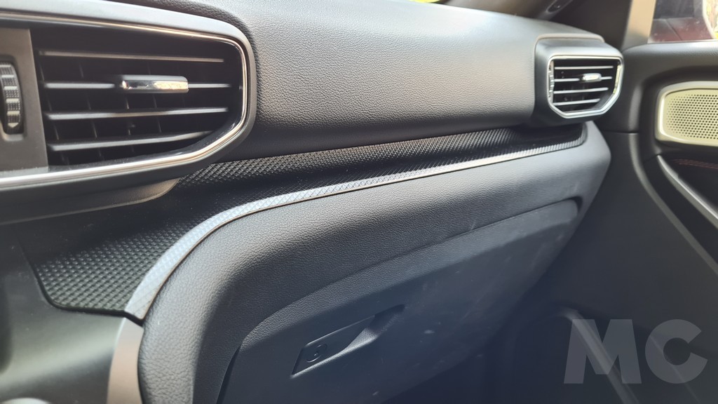 Los acabados tienen buenos materiales aunque no demasiado refinados y dan más impresión de ser resistentes que sofisticados aunque tienen buen tacto y las terminaciones y el ensamblado de las piezas son de buena calidad. Hay abundantes espacios para dejar objetos y de buen tamaño, además de un espacio para dejar el teléfono móvil con capacidad de carga inalámbrica. También encontramos un gran número de posavasos.