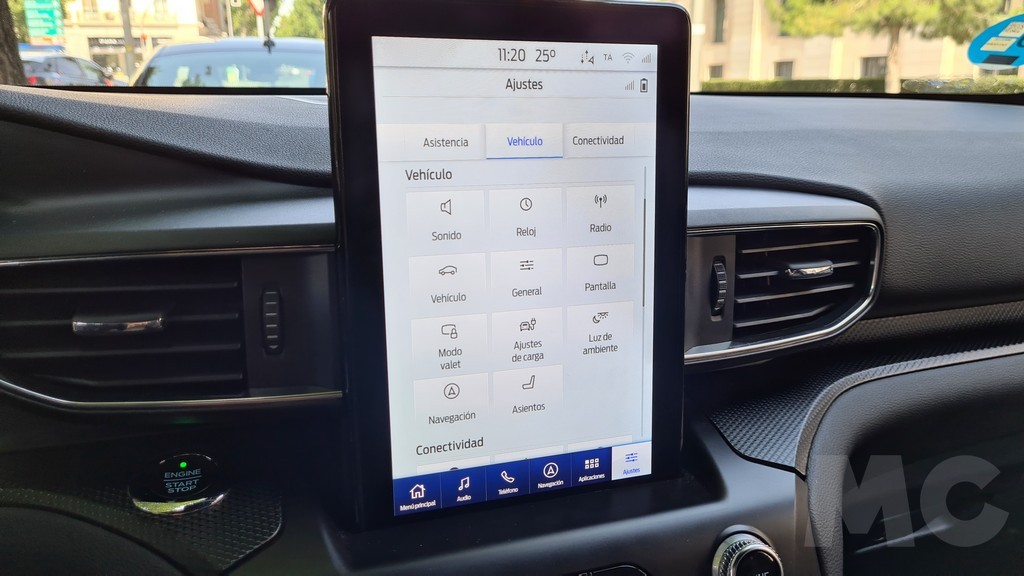 Al ser un modelo híbrido enchufable es necesario que el sistema de información pueda proporcionar datos suficientes del funcionamiento del sistema de propulsión y recarga de las baterías así como funciones que permitan programar la carga. En el caso del Ford Explorer se muestra información y capacidad de configuración más que suficientes, aunque hay modelos que en este sentido se puede decir que son más sofisticados tendremos todos los datos que necesitamos.