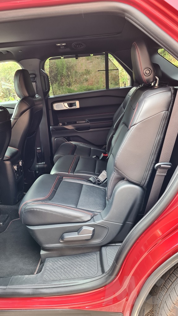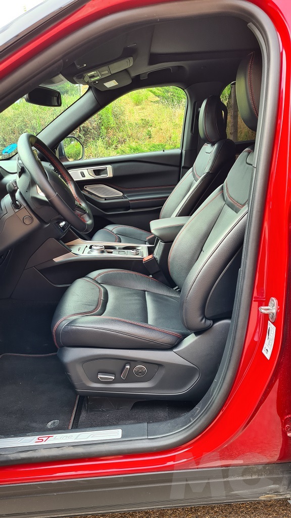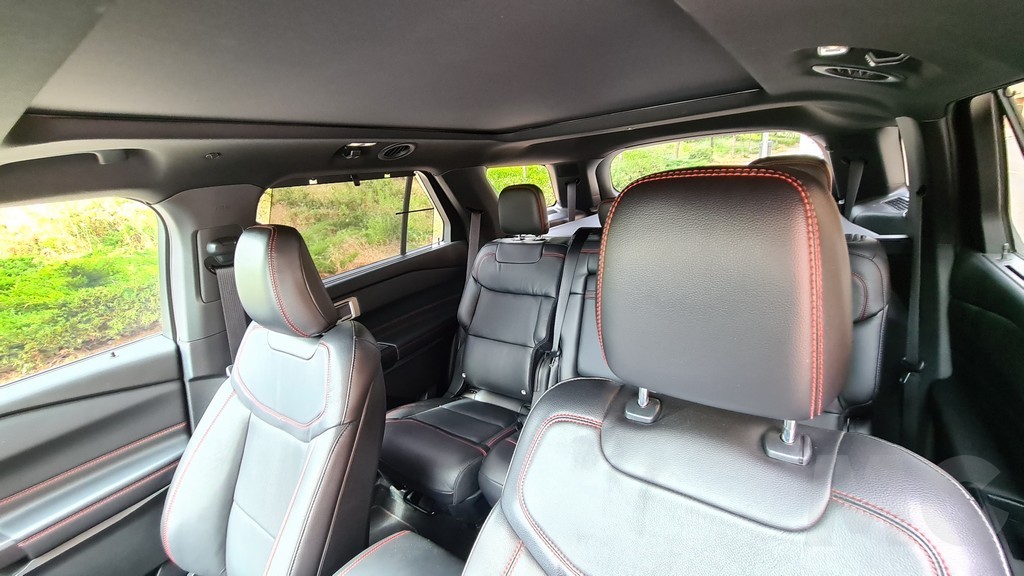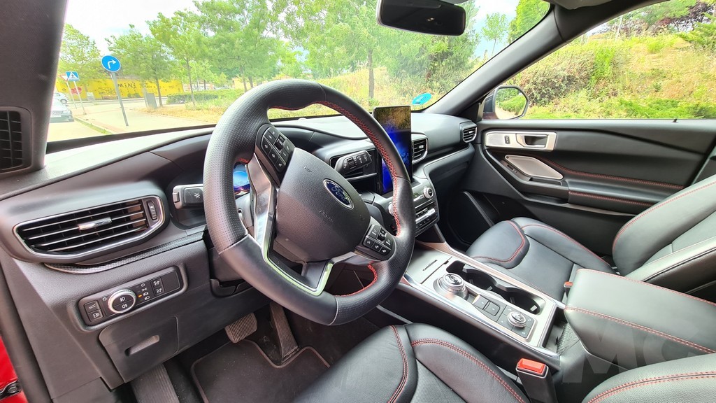 El interior del Explorer, tal y como invitan a pensar sus imponentes dimensiones, es amplio y cómodo. Las dos grandes puertas permiten un acceso sin dificultades a las dos primeras filas y algo menos cómodo a la tercera fila opcional, aunque de forma más fácil que en otros siete plazas de tamaño más pequeño. En la parte delantera nos encontramos con unos sorprendentes asientos de estilo deportivo que envuelven más de lo que se esperaría en un coche orientado al todoterreno. Aunque por otro lado con sus 457 caballos tampoco es de esperar que el coche sea demasiado «perezoso».