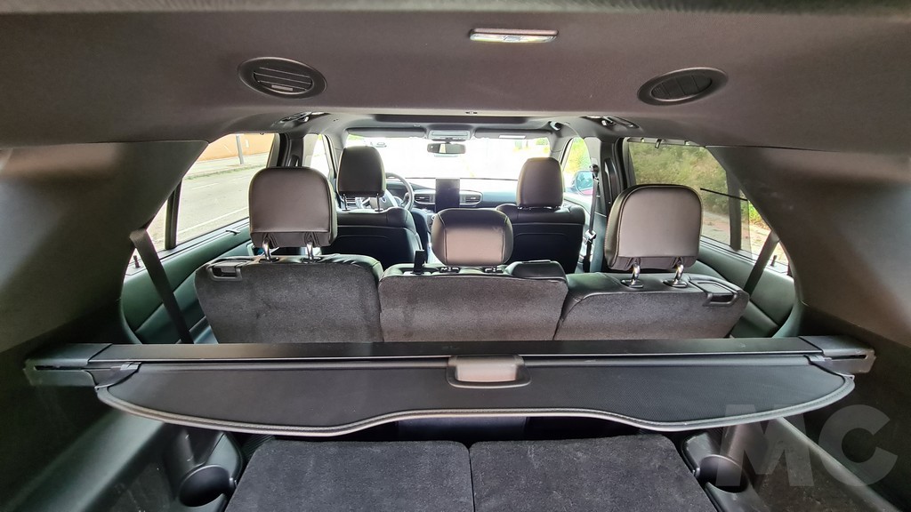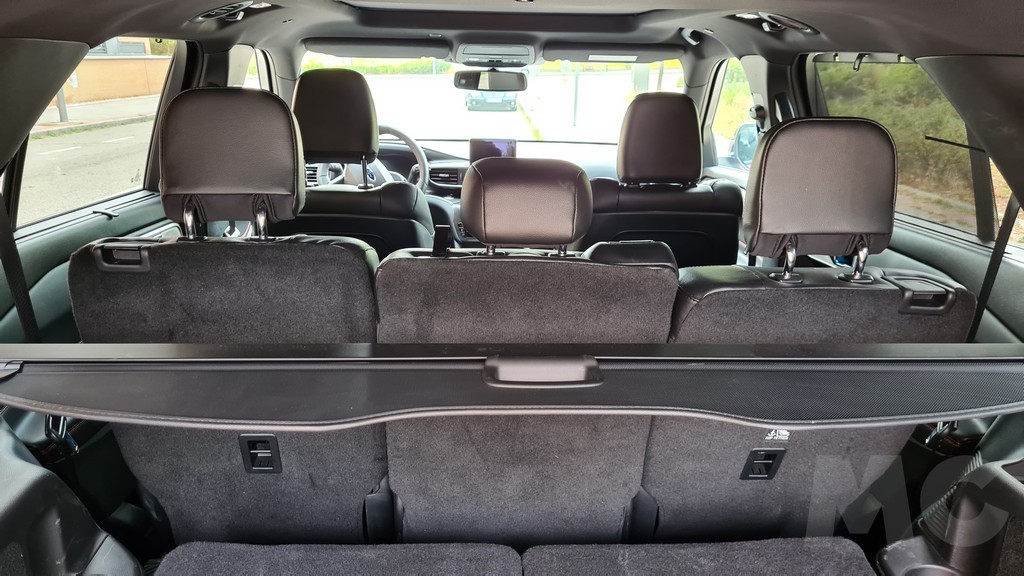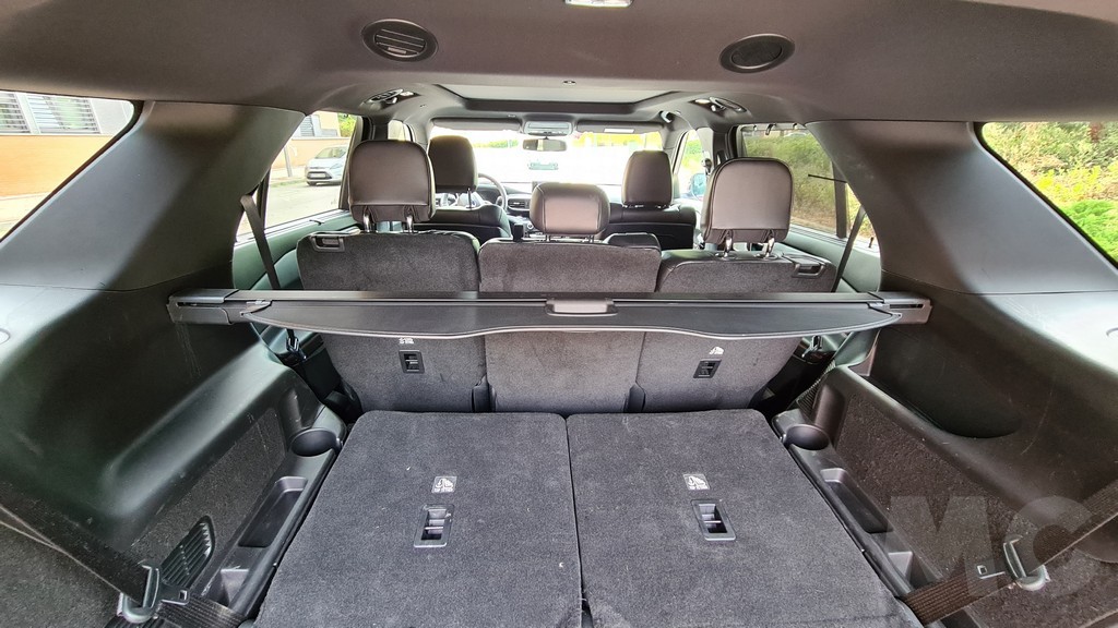 La tercera fila se puede plegar o desplegar con un mecanismo eléctrico accionable desde el maletero de forma sencilla. Con la tercera fila de asientos disponible la capacidad del maletero es de 240 litros, es bastante con respecto a otros vehículos similares. Con la fila abatida tenemos un maletero de 635 litros, una cifra considerable que permite transportar una gran cantidad de equipaje y otros objetos. Si plegamos la segunda fila la capacidad es comparable a la de una furgoneta pequeña, nada menos que 2.274 litros de capacidad.