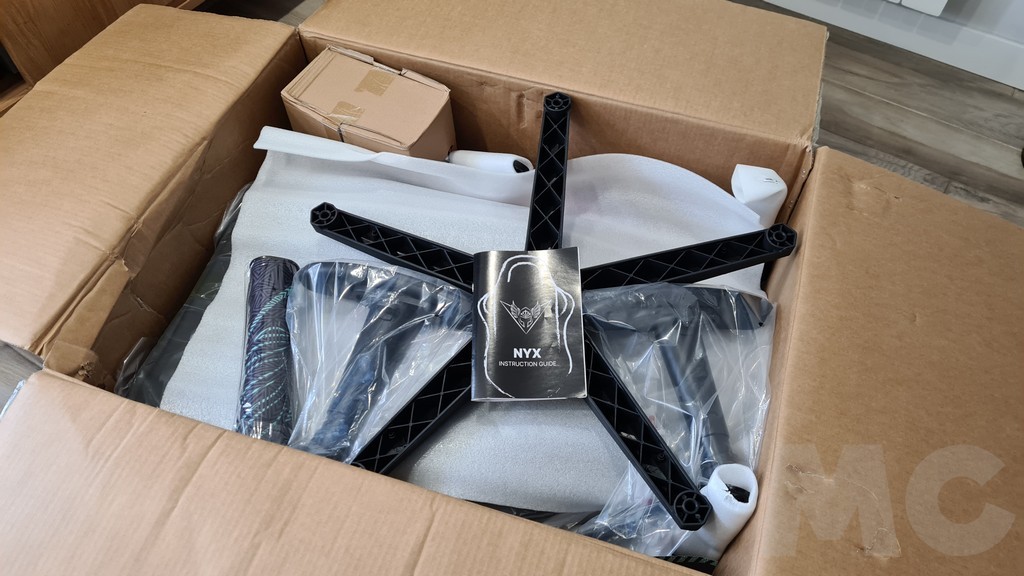 Recibimos la silla la Valk Nyx en una sola caja que contiene todos los elementos necesarios para el montaje, incluyendo una hoja de instrucciones con instrucciones muy detalladas. Además de todas las piezas en el paquete encontramos una alfombrilla para ratón y teclado de tamaño extragrande y una hoja con una promoción en la que podemos participar para conseguir un premio a cambio de completar una misión. La lista de componentes es muy útil para comprobar que tenemos todo lo necesario para montar la silla así como para preparar las herramientas necesarias.