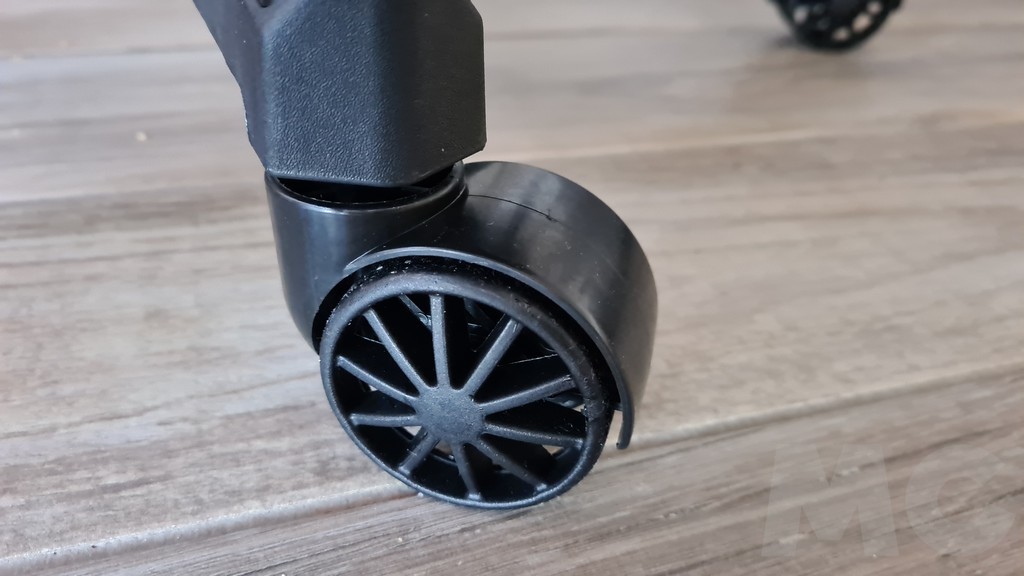 Nos ha gustado mucho el material de relleno, especialmente la espuma moldeada en frío del asiento que mantiene la forma incluso tras horas de uso. La silla dispone bajo el asiento de un sistema de ajuste para modificar la resistencia del sistema de inclinación de la silla para que bascule más o menos cuando nos reclinemos sobre ella. Un buen detalle para disfrutar de cierto margen de movilidad o dejar el respaldo fijo según nuestras necesidades y gustos. Las ruedas incorporadas tienen buena calidad aunque quizás un poco más ruidosas de lo que nos gustaría pero en cualquier caso no demasiado escandalosas y en cualquier caso ruedan bien y de forma uniforme, no «cada una a su ritmo» como sucede alguna vez con sistemas de poca calidad.