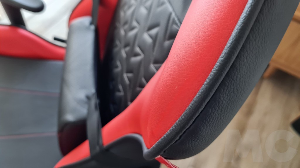La textura lograda en el respaldo con relieves en forma triangular imitando el logotipo de la marca, el diseño de los acolchados laterales a la altura de las lumbares y de los hombros que hacen que nos sintamos «arropados» por la silla son todos detalles que revelan un cuidado diseño que además añaden comodidad a la silla. Hemos realizado distintas pruebas en situaciones de juego (con volante, shooters con mando y con teclado…) y también con sesiones de trabajo (diseño, escritura, videoconferencia…) y la silla resulta cómoda tras varias horas de uso. Es importante regular la altura y la inclinación del asiento para que no tengamos problemas de circulación en las piernas (o utilizar una plataforma para los pies).