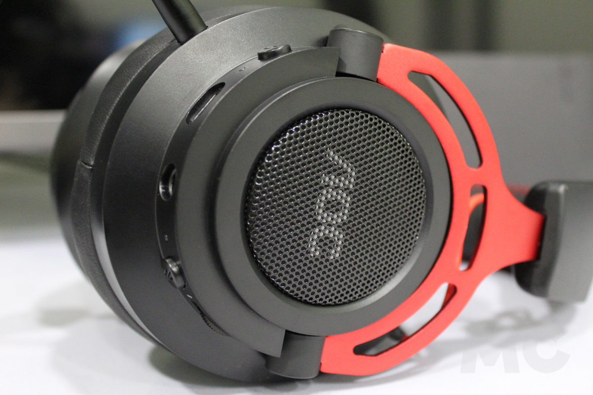 Bajando así hasta sus almohadillas, nos encontramos con un diseño ya estandarizado, con unos materiales de cueros sintético que cubrirán un relleno viscoelástico. Sin embargo, cabe destacar que la tensión de pinza de estos auriculares nos permite una gran comodidad, sin llegar a apretar en exceso ni resultar pesados aún incluso tras las sesiones de juego más largas. Además, gracias al propio acolchado y este diseño más liviano, podremos evitar el molesto efecto de las «gafas flotantes», así como las marcas por presión de las patillas detrás de las orejas.