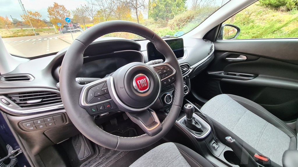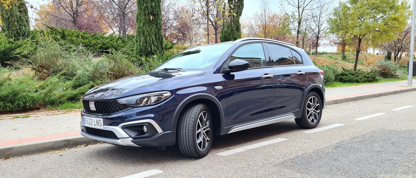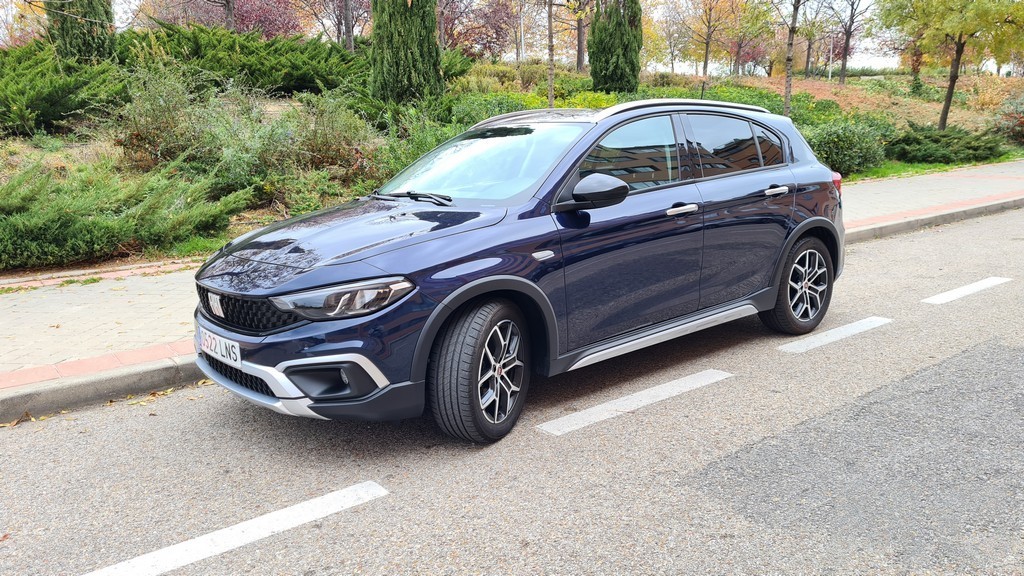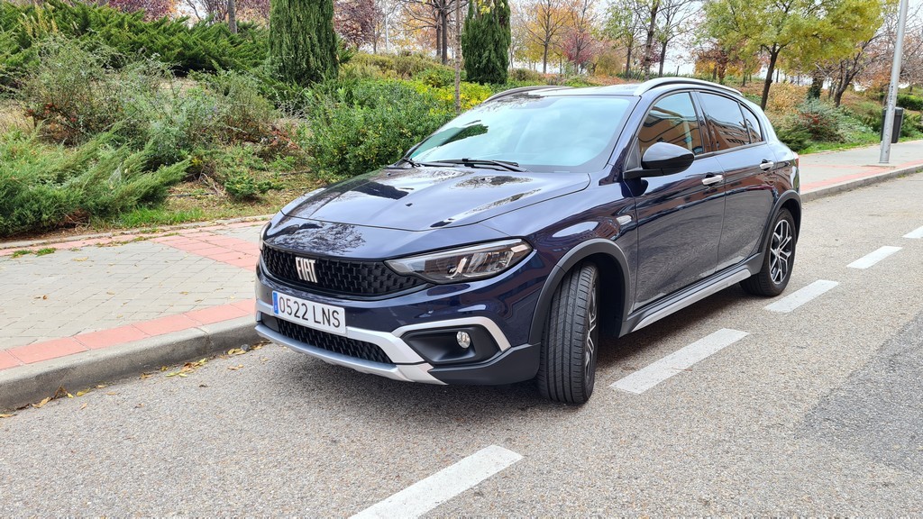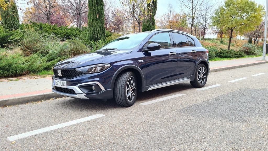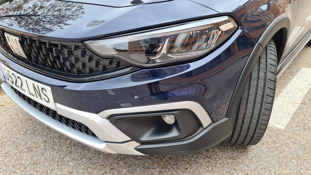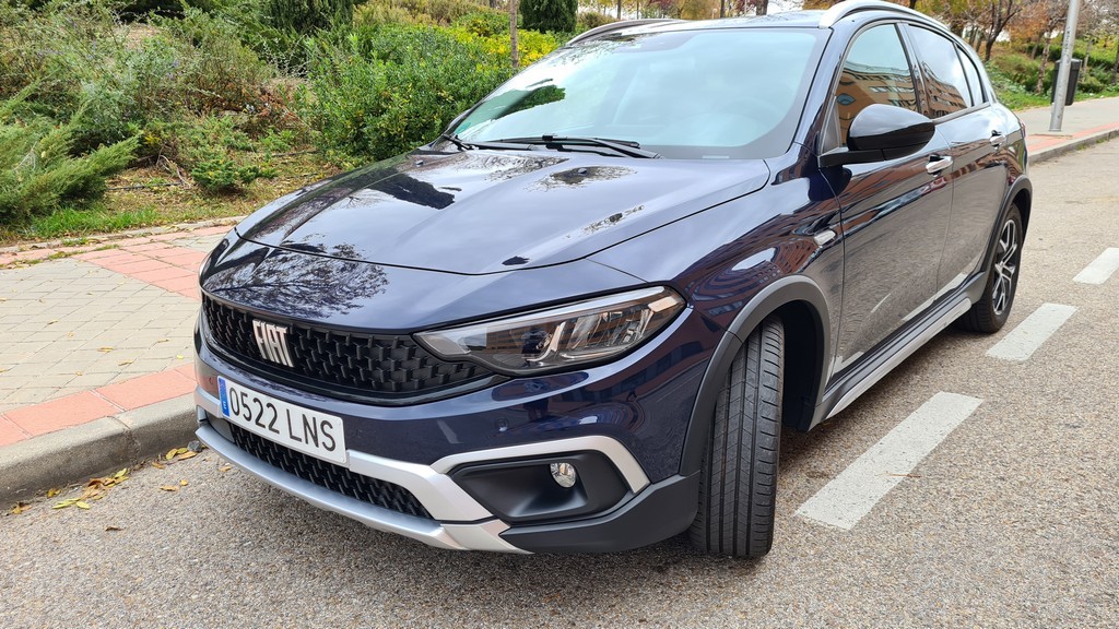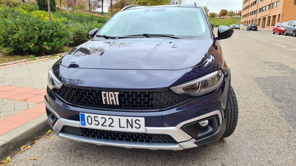 La primera impresión que nos llevamos con este Fiat es de que estamos delante de un coche más alto de lo normal, podría decirse que entre una berlina y un SUV. No solamente se nota la diferencia de altura por las suspensiones y el distinto perfil de los pneumáticos sino que también contribuye la barra decorativa del techo. El fabricante italiano se mantiene en la estrategia de competir con un coche capaz de competir en habitabilidad con los SUV sin necesidad de imitar esa carrocería.