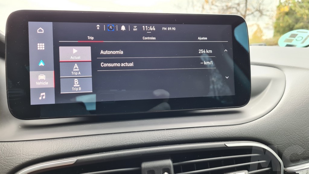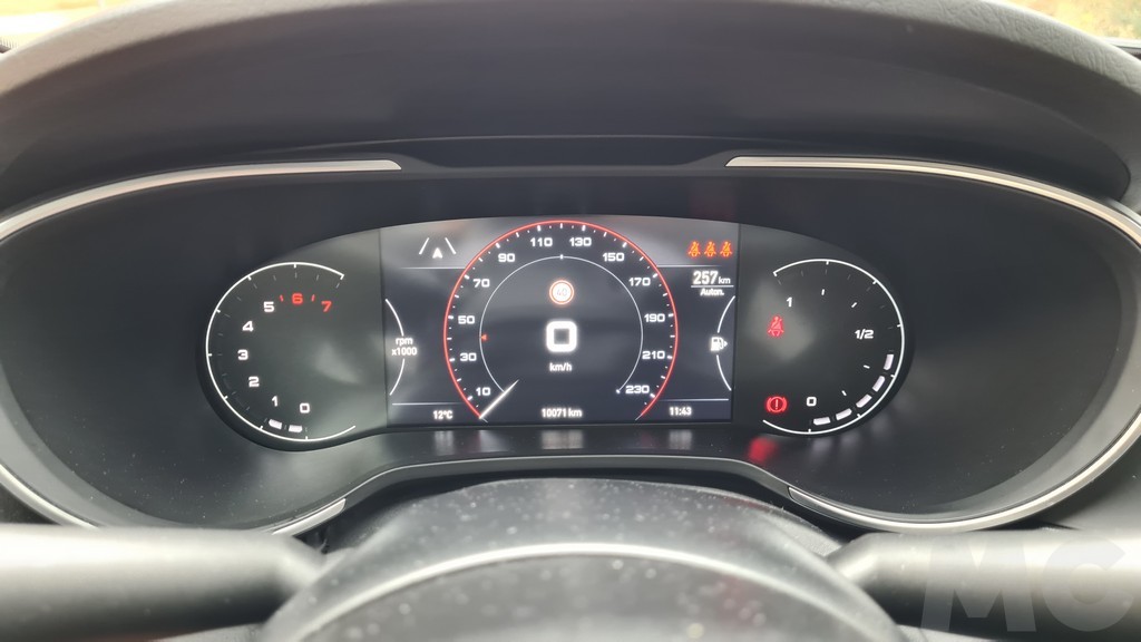 En lo que respecta a la instrumentación sigue el mismo diseño de dos diales a los lados con una pantalla digital en el centro, pero en este caso la pantalla es mucho más grande y los indicadores analógicos tienen un diseño distinto y más estilizado. El resultado es un aspecto más moderno y una mejora de la visibilidad de la información que ahora además muestra el indicador de velocidad junto con otros datos útiles para la conducción. Un detalle interesante es que encontramos un lugar para dejar el móvil que dispone de carga inalámbrica.