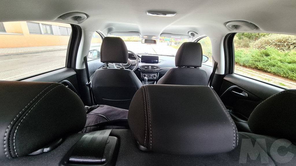 La parte trasera mantiene el diseño del Tipo cinco puertas con el guiño de la moldura inferior en color gris que le da la pincelada inspirada en los todoterreno. En el interior el Tipo sigue siendo un coche amplio, con la diferencia que en esta versión es un poco más fácil acceder gracias al ligero incremento de altura. Las plazas delanteras son amplias y la postura de conducción elevada para ser la de un turismo. Los asientos también son cómodos con un buen acolchado y con una atractiva tapicería bicolor.