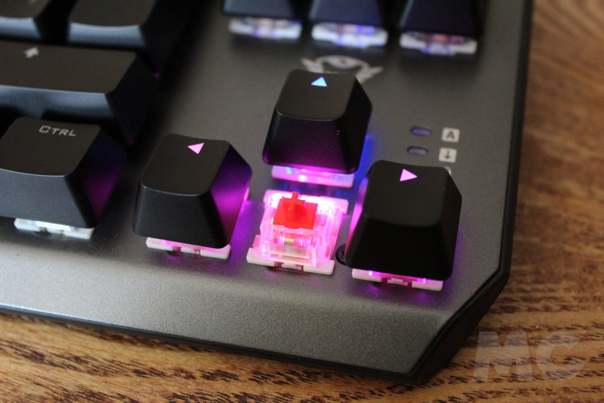 Pese a tratarse de un teclado mecánico, no deja de sorprendernos gratamente que los interruptores del GXT Callaz ofrecen unas pulsaciones no especialmente sonoras, que si bien tampoco pueden clasificarse como silenciosas, permitirán una mejor convivencia. Sin embargo, no deja de ser curioso que la marca haya añadido una pequeña resistencia que nos permitirá discernir las pulsaciones de manera sonora y táctil, con un clic algo más «plástico» que los teclados mecánicos tradicionales, pero que nos seguirá ayudando a saber cuándo realizamos cada tecleo.
