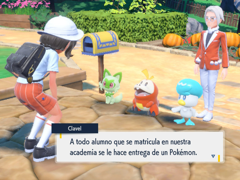 Así que nada más comenzar a jugar en Pokémon Escarlata, te introducirán a la Academia Naranja, para luego encontrarte con tu primera y más difícil misión: elegir a tu primer Pokémon. Y será Clavel, el actual Director de la Academia Naranja, quien te presente a estas encantadoras criaturas. ¿Tú a cuál elegirías para ser tu compañero de aventuras Pokémon?