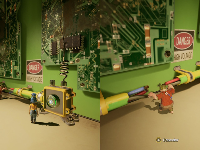Otro detalle interesante en It Takes Two es que, aparte de las misiones principales, encontraremos minijuegos a lo largo de nuestra aventura. La mayoría son muy simples y puedes saltártelos sin más y no afectará en nada a la historia principal. Pero si quieres tomar un respiro de 5 minutos te podría interesar jugarlos.