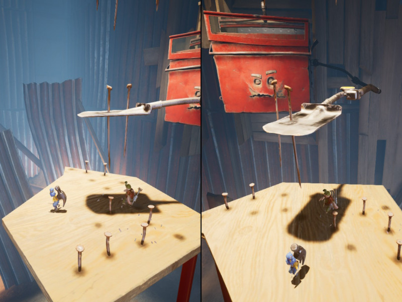 It Takes Two es un juego que puede ser disfrutado por todo el mundo, pues no tiene un nivel de dificultad exigente; tanto que las “muertes” y caídas de tus personajes no son penalizadas, pero eso no le quita su genialidad. Además, como te hemos dicho anteriormente, el juego cuenta con mecánicas en las cuales tendremos que trabajar en equipo. Por ejemplo, para poder pasar ciertos obstáculos, los personajes tendrán consigo herramientas como una cabeza de martillo y unos clavos que pueden voladores y, avanzada la aventura, contarán con una pistola de sabia y una pistola con cerillas para Cody y May respectivamente.